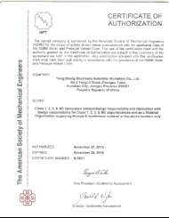 ASME NPT 授权证书
